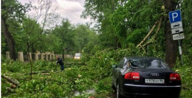 Η πρωτοφανής καταιγίδα που έπληξε την πρωτεύουσα της Ρωσίας ξερίζωσε εκατοντάδες δέντρα, δημιουργώντας ένα τοπίο ολικής καταστροφής στα σημεία που χτύπησε.