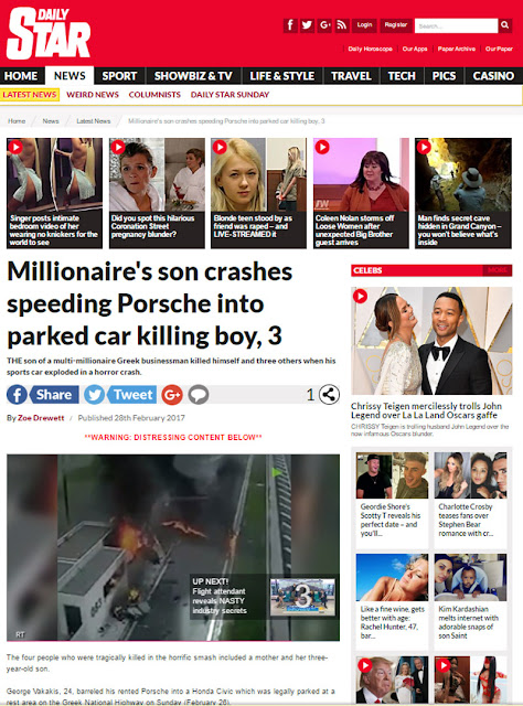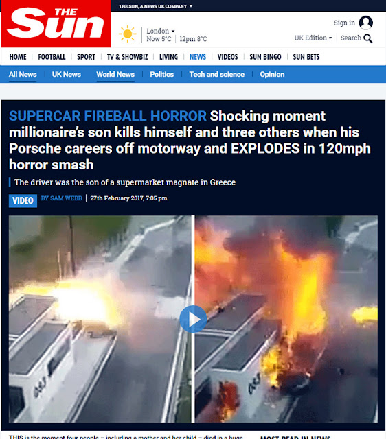 The Sun: «Η τρομακτική στιγμή που ο γιος εκατομμυριούχου σκοτώνεται παρασύροντας στον θάνατο με την Πόρσε του άλλους τρεις ανθρώπους».
