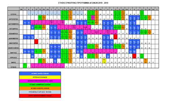 Η Super League γνωστοποίησε το πρόγραμμα ολόκληρης της σεζόν με τις ημερομηνίες των αγώνων που θα γίνουν για το πρωτάθλημα. Επίσης, έγιναν γνωστές οι ημερομηνίες που θα υπάρξουν διακοπές, τέσσερις συνολικά, όπως και οι μέρες των αναμετρήσεων για το Κύπελλο, για τις ευρωπαϊκές διοργανώσεις, αλλά και οι υποχρεώσεις της Εθνικής ομάδας.