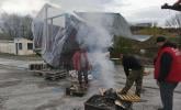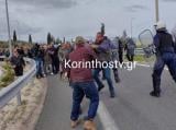 Οι αγρότες ζητούν να περάσουν τον φραγμό της αστυνομίας και να περάσουν στον κόμβο του...