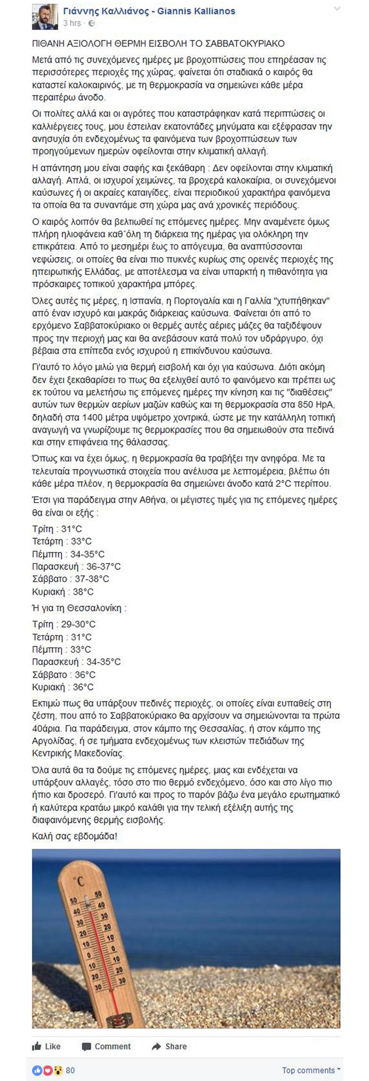 Αναλυτικά η ανάρτηση του κ. Καλλιάνου: