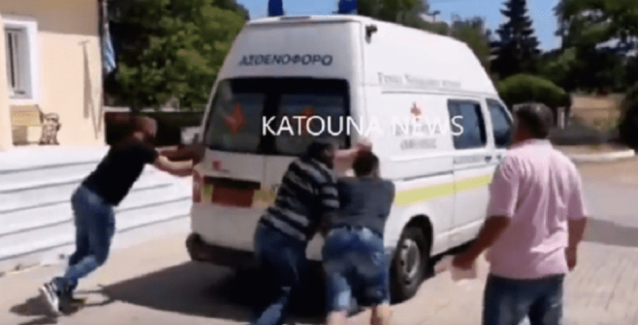 Η μηχανή του όμως έσβησε και χρειάστηκε η βοήθεια των κατοίκων για να ξαναπάρει μπρος. Ευτυχώς συνέβαλε σε αυτό και ο κατηφορικός δρόμος…