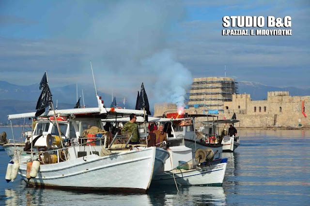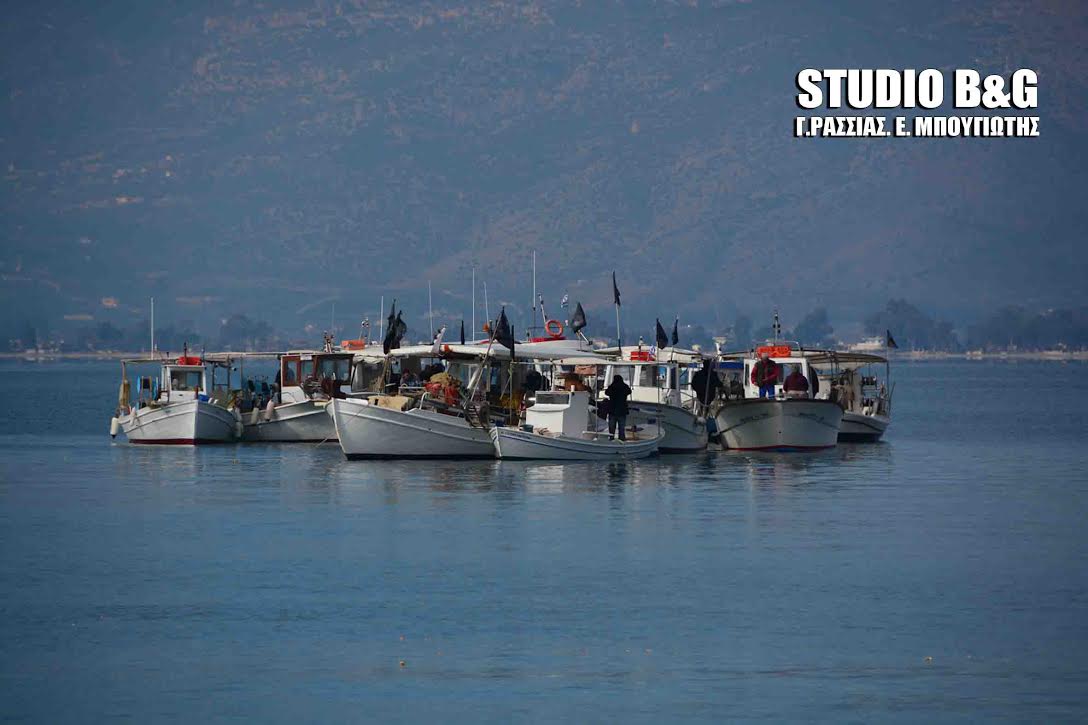 Στην κινητοποίηση συμμετείχαν περισσότερα από 60 σκάφη των Συλλόγων Αλιέων Ναυπλίου, Τολού και Νέας Κίου.