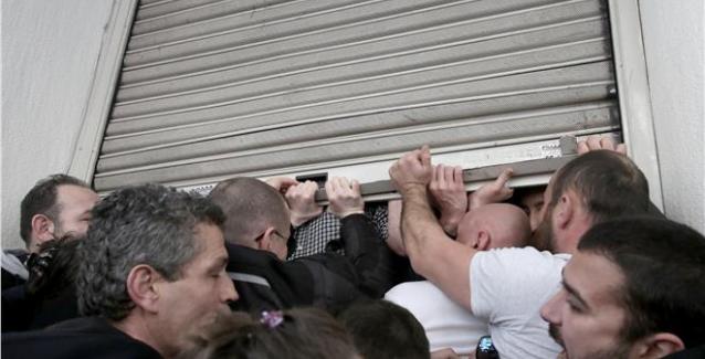 Νωρίτερα, αγανακτισμένοι, σήκωσαν τα προστατευτικά ρολά του υπουργείου, εισέβαλαν μέσα σ' αυτό και έκαναν συμβολική κατάληψη, προκειμένου να διαμαρτυρηθούν.
