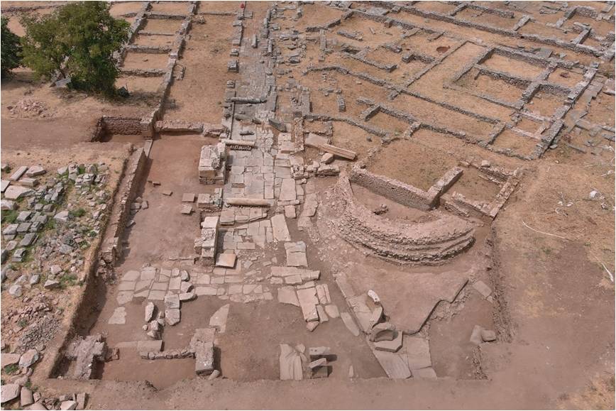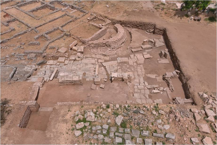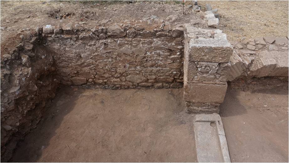 Η ανασκαφή συνεχίστηκε ανατολικά του νότιου decumanus. Εντοπίστηκε η συνέχεια της μαρμαροστρωμένης οδού, καθώς και το ανατολικό τμήμα του cardo, του κάθετου δρόμου, ο οποίος ορίζει το ανατολικό όριο της νησίδας 7. Ανατολικά του cardo εντοπίστηκαν δυο χώροι από την επόμενη, στα ανατολικά, οικοδομική νησίδα. Η έρευνα επικεντρώθηκε στην πλήρη αποκάλυψη του κρηναίου οικοδομήματος, που εντοπίζεται στο σημείο όπου συγκλίνουν οι δύο κύριες οδοί (βόρειος και νότιος deumanus). Φέτος εντοπίστηκε το σύνολο της επιφάνειας, την οποία καταλάμβανε το κρηναίο οικοδόμημα. Αποκαλύφθηκε, επιπλέον, μέρος της μαρμαρόστρωσης της πλατείας, η οποία διαμορφώθηκε στο σημείο σύγκλισης των δύο οδών. Εντοπίστηκαν πλήθος μαρμάρινων ανάγλυφων μελών, που διαμόρφωναν τα σημεία παροχής νερού: πρόκειται για μαρμάρινα καμπύλα θωράκια, που ενώνονταν σε κογχωτή διάταξη. Κατέστη δυνατή η επανατοποθέτηση δύο τεμαχίων στην αρχική τους θέση, πλαισιώνοντας το θωράκιο που σώζεται κατά χώραν.