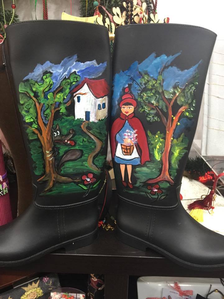 Μπότες και γαλότσες, πραγματικά έργα τέχνης ζωγραφισμένα στο χέρι, ταξιδεύουν τις μικρές και μεγάλες φίλες στον κόσμο του παραμυθιού...