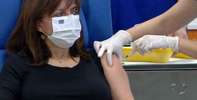 Στο νοσκομείο Ευαγγελισμός εμβολιάστηκε και η Πρόεδρος της Δημοκρατίας, Κατερίνα Σακελλαροπούλου, ο τρίτος άνθρωπος που εμβολιάζεται κατά του κορωνοϊού στη χώρα μας, μετά τη νοσηλεύτρια Ευσταθία Καμπισιούλη και τον 88χρονο Μιχάλη Γιοβανίδη.