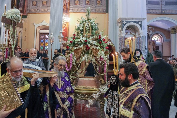 Ήδη από το βράδυ της Μεγάλης Πέμπτης οι γυναίκες και τα κορίτσια της πόλης βρίσκονταν στις εκκλησίες και στόλιζαν τους Επιταφίους.