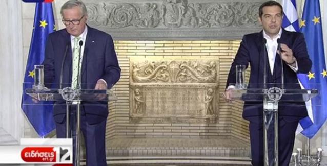 Με τη φράση «συμφωνήσαμε ότι θα είναι η τελευταία επίσημη επίσκεψη στη μνημονιακή Ελλάδα», ο πρωθυπουργός Αλέξης Τσίπρας ξεκίνησε τις δηλώσεις στην κοινή συνέντευξη Τύπου με τον πρόεδρο της Κομισιόν Ζαν Κλωντ Γιούνκερ.