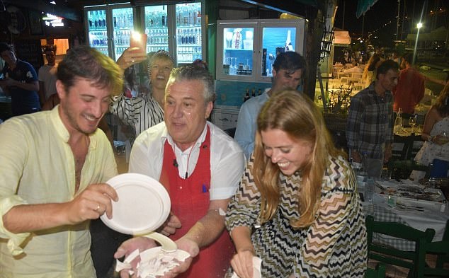 Το ελληνικό παραδοσιακό έθιμο, που απαγορεύτηκε κάποτε από την Χούντα, αναβίωσε σε ψαροταβέρνα του νησιού των Δωδεκανήσων. Η πριγκίπισσα Βεατρίκη μαζί με το μοντέλο Κατερίνα Κούρκοβα και την παρέα τους ξεφάντωσαν για τα καλά. Το μοντέλο από την Τσεχία, με ένα κινητό στο χέρι δεν σταμάτησε να βγάζει βιντεάκια και να τραβά φωτογραφίες. Η πριγκίπισσα, φορώντας ένα μίνι φόρεμα με γεωμετρικά πολύχρωμα σχέδια, απαθανατίστηκε από τον φακό επάνω σε μια καρέκλα να ξεσαλώνει και να δίνει ζωή στην ψαροταβέρνα.