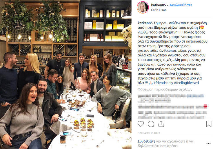 Η Κατερίνα Καινούργιου με το σύντροφό της και καλούς της φίλους βρέθηκαν σε γνωστό μαγαζί για τη γιορτή της. Κι ανέβασε φωτογραφία από τη βραδιά, όπου τη συνόδευσε με το εξής σχόλιο: