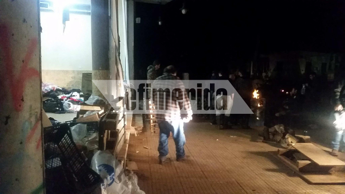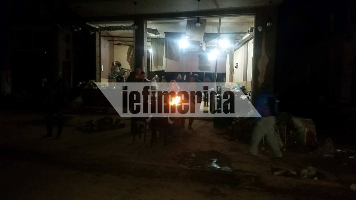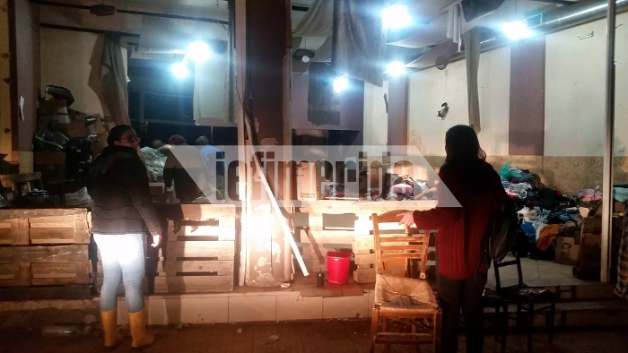 Οι περιπολίες στην περιοχή είναι αυξημένες και οι κάτοικο, μαζί με τους αστυνομικούς και σεκιούριτι φυλάνε τα είδη πρώτης ανάγκης που έχουν σε ψητοπωλείο που έχει καταστραφεί από την θεομηνία.