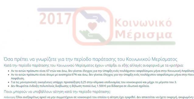 Χρήσιμες οδηγίες για την περίοδο παράτασης του κοινωνικού μερίσματος αναρτήθηκαν στο διαδικτυακό τόπο www.koinonikomerisma.gr.
