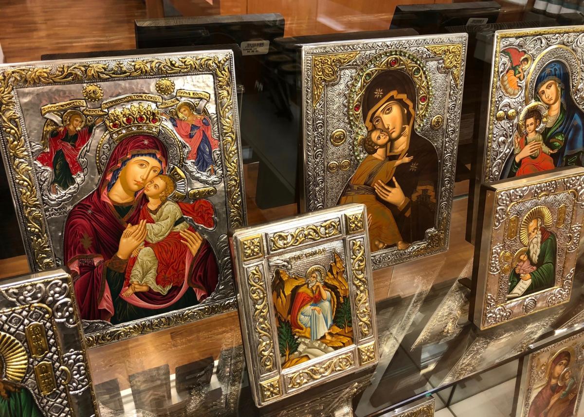 Οι Εικόνες, πιστά αντίγραφα των σημαντικότερων εικόνων της Ορθοδοξίας που φυλάσσονται στις μονές του Αγίου Όρους, κατέχουν ξεχωριστή θέση στο κατάστημα υψηλής τέχνης. Οι σταυροί και τα κοσμήματα τα οποία είναι από χρυσό και ασήμι διαμορφωμένα σύμφωνα με την υψηλή τέχνη της αργυροχρυσοχοΐας, μπορούν να αποτελέσουν ξεχωριστό δώρο για όλους μας...