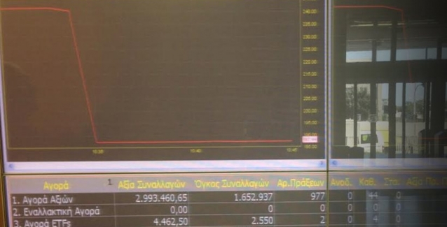 Στα πρώτα 25 λεπτά της συνεδρίασης εν μέσω παγωμένης αγοράς είχαν πραγματοποιηθεί συναλλαγές ύψους μόλις 4 εκατ. ευρώ, ενώ στην μία ώρα συνεδρίασης, ο τζίρος είναι μόλις 7,5 εκατ. ευρώ. Ύστερα από μιάμιση ώρα συναλλαγών έχουν χαθεί 9,5 δισ. ευρώ (χονδρικά) από την αξία των εισηγμένων εταιρειών. Το σοκ για την οικονομία θα είναι πολύ μεγάλο καθώς οι ξένοι δεν αγοράζουν τις ελληνικές εταιρείες, περιμένοντας περιμένουν να δουν τι θα συμβεί με την συμφωνία. Προτιμούν να πουλήσουν τις τράπεζες και περιμένουν να αγοράσουν φθηνότερα. Όπως λένε διαχειριστές, δεν πρόκειται να αγοράσουν καθώς δεν πιστεύουν πως η σημερινή κυβέρνηση είναι σε θέση να περάσει τις μεταρρυθμίσεις. Από τα 47,9 δισ. ευρώ που ήταν κλειδωμένα επί 25 ημέρες με μια πτώση 20%, έχουν χαθεί 9,5 δισ. ευρώ μέσα σε μιάμιση ώρα.