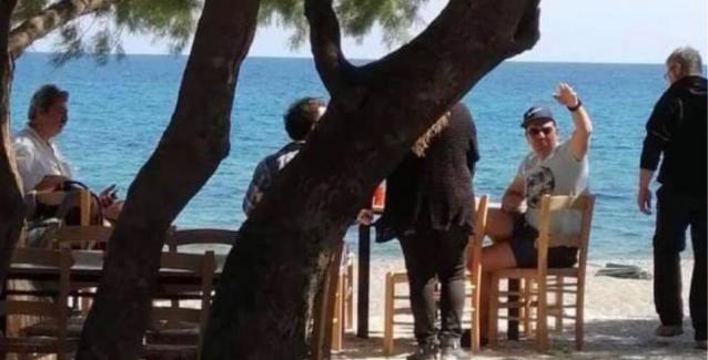 Σε χαλαρή διάθεση, ο Αλέξης Τσίπρας εικονίζεται με υψωμένο το αριστερό του χέρι στη φωτογραφία που δημοσιεύει αποκλειστικά το protothema.gr. Ισως για να ζητήσει κάτι από τον σερβιτόρο, ίσως επειδή κάνει νόημα σε κάποιον άλλο φίλο ή συντροφό του. Απέναντι από τον Αλέξη Τσίπρα -που έχει πιάσει τη μία κορυφή του τραπεζιού- βρίσκεται ο Παύλος Πολάκης και στα αριστερά του πρωθυπουργού κάθεται ένα άλλο πρόσωπο το οποίο δεν διακρίνεται. Πίσω από τον κ. Τσίπρα βρίσκεται ένας από τους σερβιτόρους της παραλιακής ταβέρνας, που φαίνεται σχεδόν άδεια.