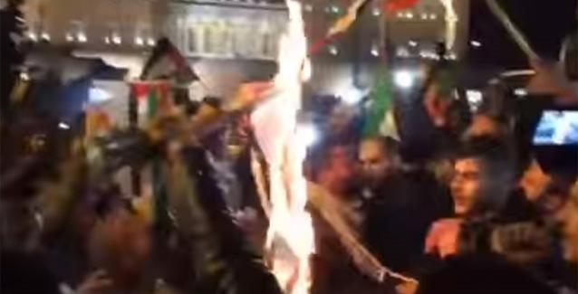 Οι περίπου 1.000 διαδηλωτές έκαψαν τη σημαία του Ισραήλ και την αμερικανική σημαία.