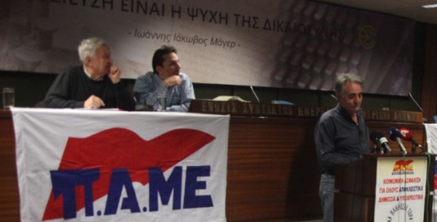 Ανοιχτή συνέντευξη Τύπου παραχώρησε το ΠΑΜΕ σήμερα στα γραφεία της ΕΣΗΕΑ με στόχο να ανοίξει η συζήτηση παντού ώστε να αποτραπεί «το νέο έγκλημα για την κοινωνική ασφάλιση», όπως χαρακτηρίστηκε η ασφαλιστική μεταρρύθμιση που προωθεί η κυβέρνηση.