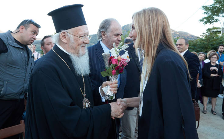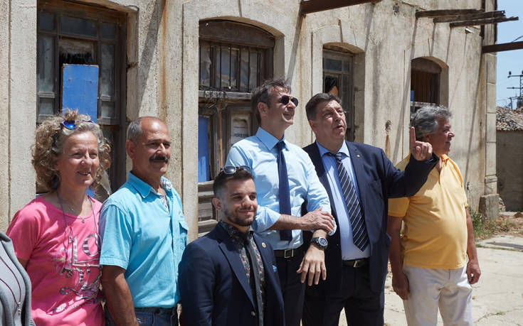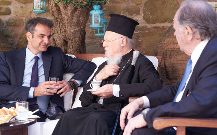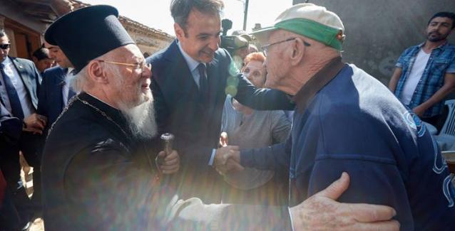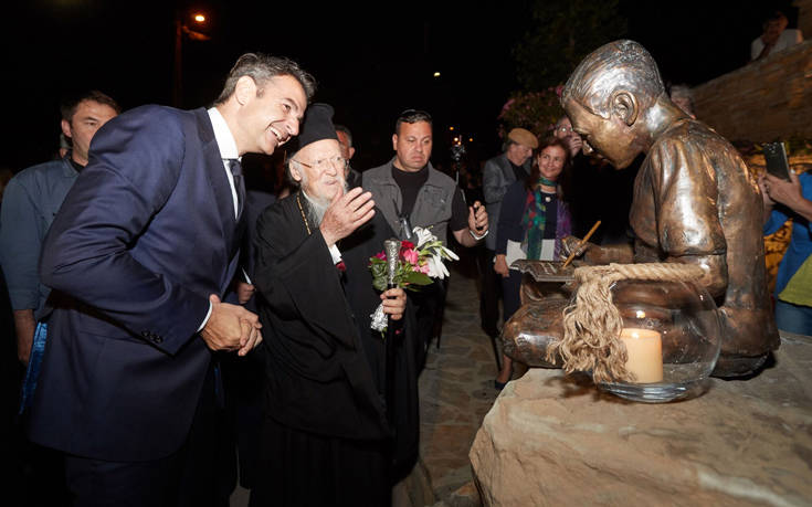Αμέσως μετά, ο πρόεδρος της ΝΔ είχε την ευκαιρία να περπατήσει μαζί με τον Οικουμενικό Πατριάρχη κ. Βαρθολομαίο στους πλακόστρωτους δρόμους του χωριού. Ο κ. Βαρθολομαίος ξενάγησε τον κ. Μητσοτάκη το σπίτι στο οποίο γεννήθηκε και μεγάλωσε, όπως και σε ένα μικρό μουσείο που έχουν αφιερώσει οι κάτοικοι του χωριού στη ζωή και το έργο του. Ο κ. Μητσοτάκης εξήρε το έργο του Οικουμενικού Πατριαρχείου, χάρη στις προσπάθειες του οποίου οι Έλληνες της Ίμβρου επιστρέφουν τα τελευταία χρόνια στο νησί τους. Είναι ενδεικτικό ότι από 168 εναπομείναντες Έλληνες το 2000, σήμερα στο νησί κατοικούν μόνιμα περισσότεροι από 550 Έλληνες, ανάμεσα στους οποίους και 39 μαθητές, όπως και 13 βρέφη που γεννήθηκαν στην Ίμβρο.