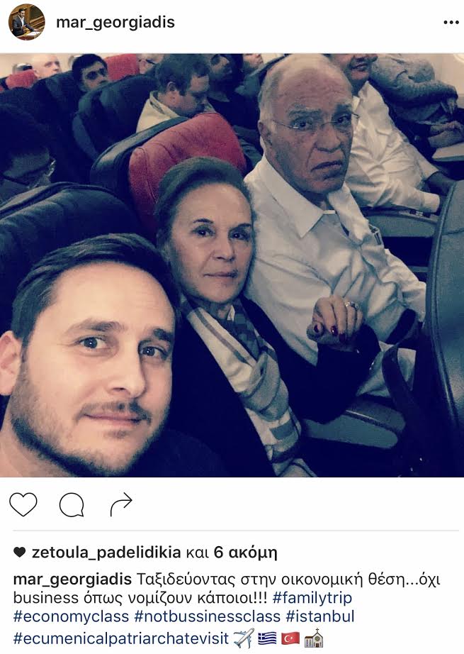 Μάλιστα, η οικογένεια Λεβέντη ταξίδεψε σε οικονομική θέση με τον βουλευτή της Ενωσης Κεντρώων Μάριο Γεωργιάδη να «ανεβάζει» selfie από το αεροπλάνο με την μητέρα του Νατάσα Μεντεσίδου -Λεβέντη και τον πρόεδρο του κόμματος γράφοντας «Ταξιδεύοντας στην οικονομική θέση. Οχι business όπως νομίζουν κάποιοι».