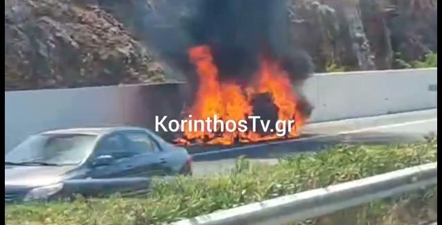 Ένα Ι.Χ. αυτοκίνητο τυλίχθηκε ξαφνικά στις φλόγες ενώ βρισκόταν εν κινήσει στην Εθνική Οδό Κορίνθου – Τριπόλεως, στο ύψος της Νεμέας.