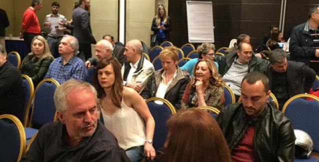 Τα βασικά μέλη της διαπραγματευτικής ομάδας, ο υπουργός Οικονομικών Ευκλείδης Τσακαλώτος και η υπουργός Εργασίας Έφη Αχτσιόγλου, δίνουν το «παρών» προτιμώντας να καθίσουν στις πίσω θέσεις.