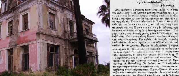Η κακοδαιμονία του σπιτιού άρχισε ευθύς αμέσως με την κατοίκησή του. Κατά το μύθο, μια σαύρα έπεσε στην καράφα με το γάλα που θα έπιναν τα τρία παιδιά της οικογένειας. Πέθαναν από δηλητηρίαση και το ταφικό τους μνημείο, στο νεκροταφείο Βόλου, παρουσιάζει ακριβώς ένα τραπέζι, τρία καρεκλάκια, την καράφα και τη σαύρα στο χείλος της.