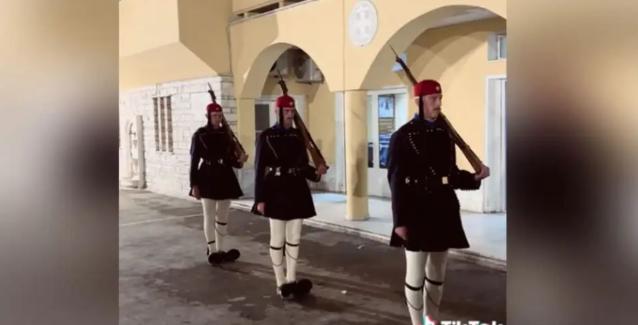 Το βίντεο που κάνει τον γύρο του Διαδικτύου, δείχνει τους δυο Εύζωνες να εκτελούν τα παραγγέλματα, ενώ οι συνάδελφοί τους, τους παρακολουθούν με μεγάλη συγκίνηση, αυτές τις στιγμές.