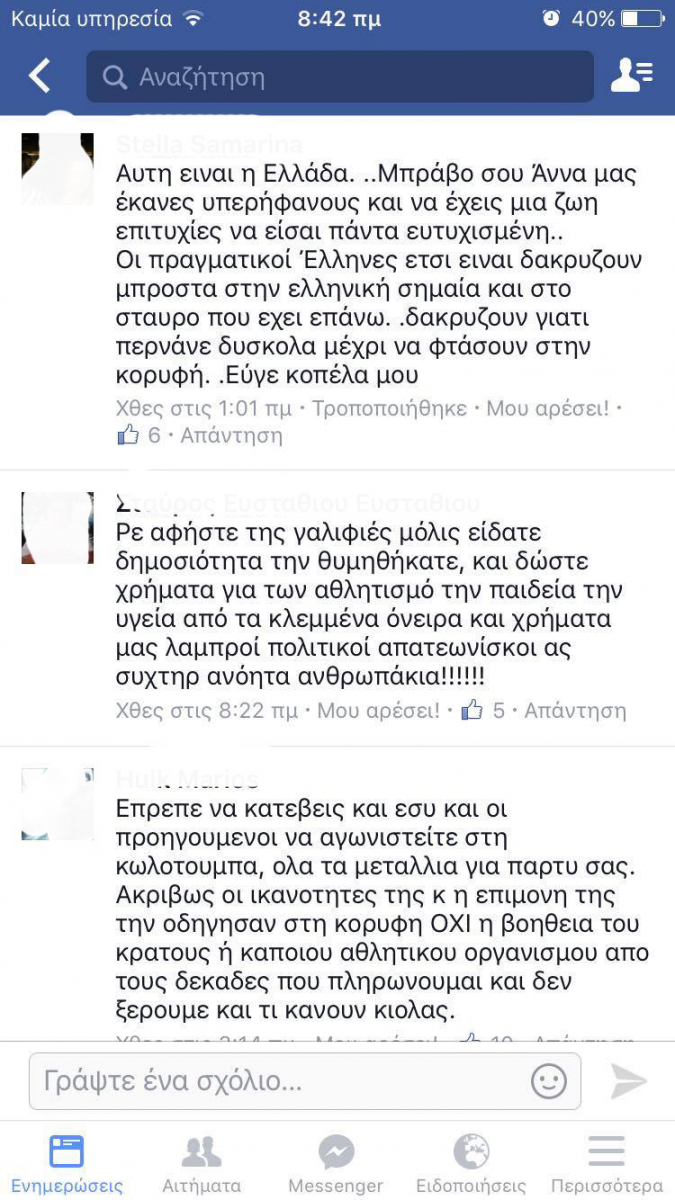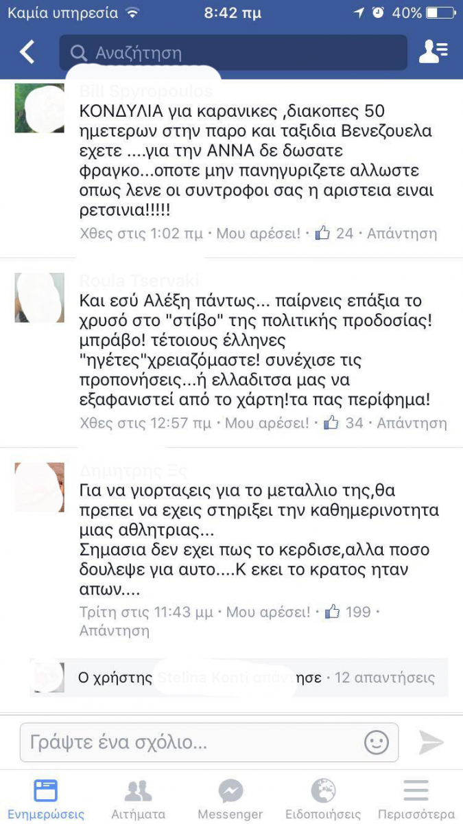 Οι χρήστες του διαδικτύου και ειδικά των social media "στόλισαν" κανονικά τον κ. Τσίπρα, που θυμήθηκε -και όχι μόνο αυτός από πλευράς πολιτείας- τώρα την ελληνίδα πρωταθλήτρια, ενώ την είχαν ξεχάσει όλο το διάστημα πριν τους Ολυμπιακούς αγώνες και κυρίως κατά την διάρκεια της προετοιμασίας της.