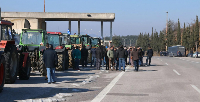 Οι δυνάμεις της αστυνομίας σταμάτησαν τους αγρότες στα διόδια πριν από το τελωνείο των Ευζώνων.