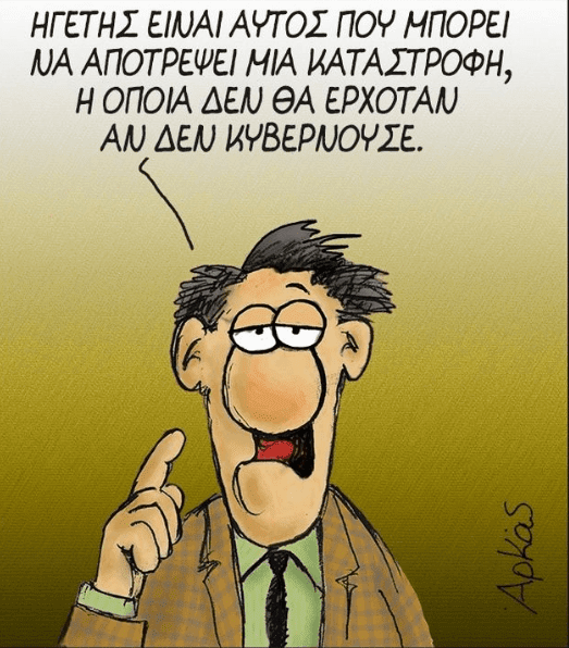 Ο πρόεδρος της ΝΔ χρησιμοποίησε ξανά μια γελοιογραφία του γνωστού σκιτσογράφου εξαπολύοντας επίθεση κατά του πρωθυπουργού Αλέξη Τσίπρα. «Ηγέτης είναι αυτός που μπορεί να αποτρέψει μια καταστροφή, η οποία δεν θα ερχόταν αν δεν κυβερνούσε» αναφέρει ο ήρωας του Αρκά, ενώ ο Κυριάκος Μητσοτάκης συμπλήρωσε απευθυνόμενος στον πρωθυπουργό «εσείς δεν είστε ικανός ούτε αυτή την καταστροφή να αποτρέψετε», προτρέποντάς τον για άλλη μια φορά να παραιτηθεί! Λίγη ώρα αργότερα ο Αρκάς σχολίασε με νέο σκίτσο του τη νέα αναφορά του στη Βουλή από τον αρχηγό της Αξιωματικής αντιπολίτευσης.