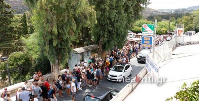 Σύμφωνα με  το cretalive.gr, οι εικόνες έξω από τον αρχαιολογικό χώρο είναι αποκαρδιωτικές, καθώς χιλιάδες τουρίστες σχηματίζουν ουρά εκατοντάδων μέτρων, περιμένοντας τη σειρά τους, μέχρι να αποκτήσουν πρόσβαση στο μνημείο.