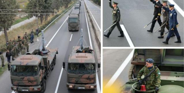 Η δοκιμαστική παρέλαση ξεκίνησε με τα δίκυκλα της Στρατονομίας, ενώ ακολούθησαν τα μηχανοκίνητα τμήματα. Κάτοικοι της περιοχής βρέθηκαν από νωρίς στην εθνική οδό για να απαθανατίσουν τις εντυπωσιακές εικόνες με τα κινητά τους.