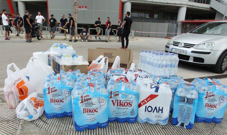 24 Ιουλίου 2018 - 21:33 Τελευταία τροποποίηση στις 24 Ιουλίου, 2018 - 21:33 Ελλάδα Τρόφιμα, νερά, φάρμακα και άλλα είδη πρώτης ανάγκης συγκέντρωσαν μέλη της «Θύρας 7» στο πάρκινγκ του γηπέδου «Καραϊσκάκης», και τα παρέδωσαν σε όσους τα έχουν ανάγκη μετά τις καταστροφικές πυρκαγιές στην Αττική. Δείτε φωτογραφίες: