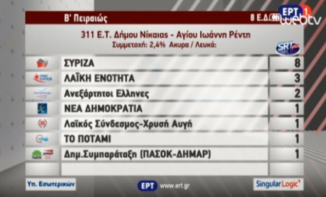 Απίστευτο και όμως εκλογικό και άκρως ελληνικό!Με συμμετοχή μόλις 2,4% έκλεισε το εκλογικό τμήμα 311 του Δήμου Νίκαιας-Αγίου Ιωάννη Ρέντη στη Β' Πειραιώς.