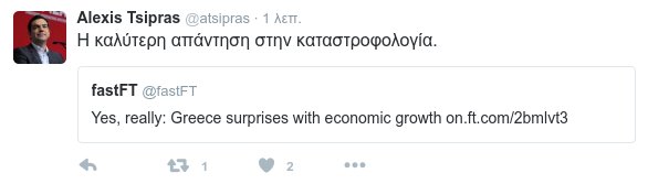 Αυτό ήταν αρκετό για τον πρωθυπουργό Αλέξη Τσίπρα να κάνει retweet στο σχετικό δημοσίευμα και να πανηγυρίσει... δεόντως: