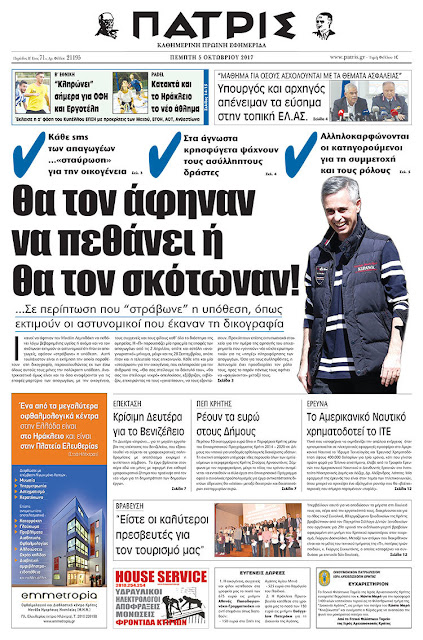 Αυτό αποκαλύπτεται μέσω του επίσημου διαβιβαστικού της Αστυνομίας που δημοσιεύσει σήμερα η ΠΑΤΡΙΣ.