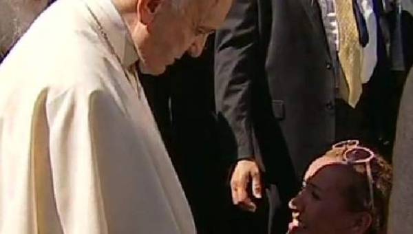 «Είμαι και εγώ χριστιανή» φέρεται να φώναζε η πρόσφυγας, η οποία τελικά πλησίασε τον Πάπα Φραγκίσκο και γονατιστή έκλαιγε στα πόδια του.