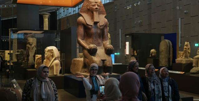 Όταν το μουσείο ανοίξει για το κοινό την Τρίτη, τους επισκέπτες θα υποδέχεται στο τεράστιο αίθριο το πιο μνημειώδες άγαλμα του μουσείου – 83 τόνοι γρανίτη, ύψους έντεκα μέτρων – που αναπαριστά τον Ραμσή Β΄, τον Φαραώ που βασίλευσε στην Αίγυπτο για 66 χρόνια πριν από περισσότερα από 3.000 χρόνια.