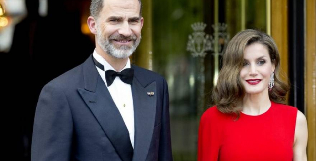 Στο πλάι της ο πάντοτε γοητευτικός βασιλιάς Φίλιππος, με μαύρο κοστούμι και παπιγιόν, ενώ το περιποιημένο του μούσι έχει ασπρίσει αρκετά.