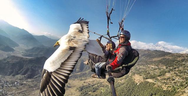 Εκπαιδευμένα αρπακτικά πτηνά πετούν μαζί με τον χρήστη, οδηγώντας τον σε θερμά ρεύματα αέρα.
