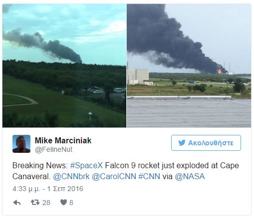 Πολύ άσχημα φαίνεται πως πήγε η δοκιμή του διαστημόπλοιου “SpaceX Falcon 9” καθώς το τελευταίο εξερράγη στο Ακρωτήρι Κανάβεραλ της Φλόριντα, κάτω από άγνωστες μέχρι στιγμής συνθήκες.