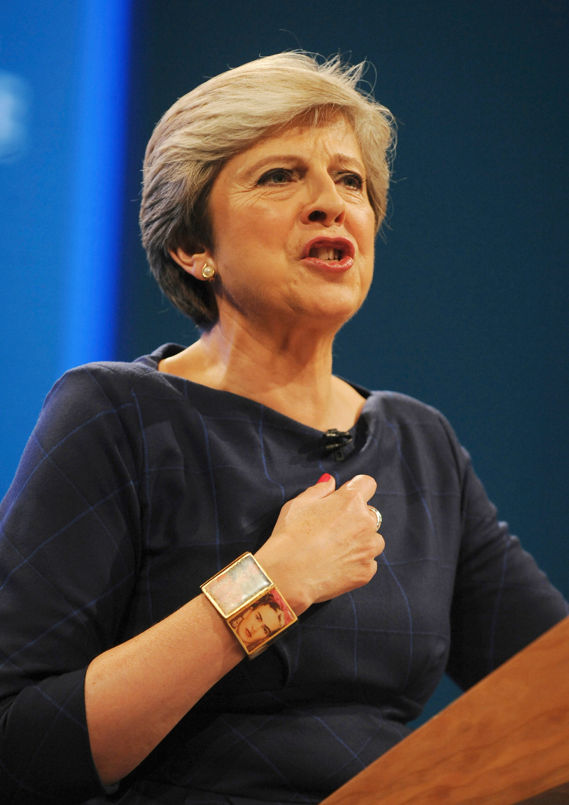 Η Τερέζα Μέι ανέβηκε στο βήμα της ετήσιας Εθνικής Συνδιάσκεψης του κυβερνώντος κεντροδεξιού κόμματος της Μεγάλης Βρετανίας φορώντας ένα navy φόρεμα, το οποίο συμπλήρωσε με ένα ιδιαίτερο βραχιόλι.