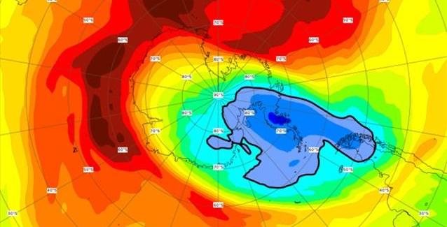 Η τρύπα του όζοντος έφθασε φέτος στο μέγιστο σημείο της στις 8 Σεπτεμβρίου, στα 16,4 εκατομμύρια τετραγωνικά χιλιόμετρα (το μικρότερο ετήσιο μέγιστο όλων των εποχών). Στη συνέχεια, έως τα μέσα Οκτωβρίου είχε πλέον συρρικνωθεί κάτω από 10 εκατομμύρια τετραγωνικά χιλιόμετρα, το χαμηλότερο επίπεδο στην ιστορία.