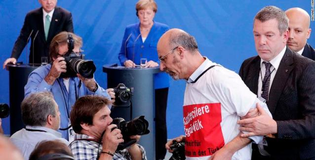 Ένας δημοσιογράφος, ο οποίος πραγματοποίησε μια διαμαρτυρία κατά τη διάρκεια της επίσημης επίσκεψης του προέδρου της Τουρκίας Ρετζέπ Ταγίπ Ερντογάν στη Γερμανία τον περασμένο μήνα κινδυνεύει να απελαθεί στην Τουρκία τον Ιανουάριο.