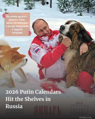 Ένα νέο ημερολόγιο κυκλοφόρησε σε περίπτερα και βιβλιοπωλεία στη Ρωσία, με… πρωταγωνιστή τον Βλαντίμιρ Πούτιν σε διάφορες πόζες και ρόλους: ο πατέρας του έθνους, ο ισχυρός ηγέτης, ο λάτρης των extreme sports, ο φιλόζωος.