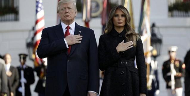 Εν μέσω συνεργατών, ο Ντόναλντ και η Μελάνια Τραμπ στάθηκαν σιωπηλοί σε στάση προσοχής στους κήπους του Λευκού Οίκου στις 08:46 τοπική ώρα (15:46 ώρα Ελλάδας), όταν το πρώτο επιβατικό αεροπλάνο, του οποίου την πορεία εξέτρεψαν μέλη της τρομοκρατικής οργάνωσης Αλ Κάιντα, έπεσε πάνω σε έναν από τους δύο πύργους του Παγκόσμιου Κέντρου Εμπορίου (WTC) στη Νέα Υόρκη.