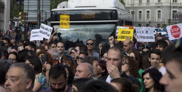 Πολλές χιλιάδες άνθρωποι κατέκλυσαν την Κυριακή τους δρόμους της Μαδρίτης με αφορμή τη συμπλήρωση πέντε ετών από τη γέννηση των «Αγανακτισμένων», του κινήματος που δημιουργήθηκε στη Μαδρίτη με στόχο να καταγγείλει μια πολιτική τάξη αποκομμένη από την πραγματικότητα που βιώναν οι πολίτες, τη διαφθορά και τα μέτρα λιτότητας.
