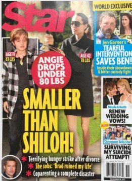 Θυμίζουμε πως από περίπου έναν χρόνο το Νational Enquirer, είχε εξώφυλλο την ηθοποιό με τίτλο «Ανορεξική η Angelina. Ζυγίζει 37 κιλά και αρνείται να φάει!»