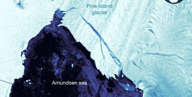 Ο δορυφόρος Landsat 8 κατέγραψε τη στιγμή της διάσπασης στις 21 Σεπτεμβρίου, όταν το κομμάτι πάγου από τον Pine Island Glacier.